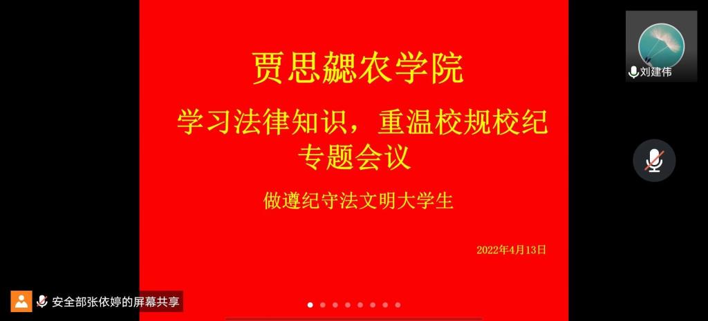 2022年4月15日是第七个国家安全教育日,为迎接国家安全教育日的到来,增强对国家安全教育日的宣传教育,维护正常的教育教学秩序,提高学生守规守法的自觉性和明辨是非的能力。15VIP太阳集团安全部联合老师特于4月13日开展了“学习法律知识,重温校规校纪”线上专题会议。