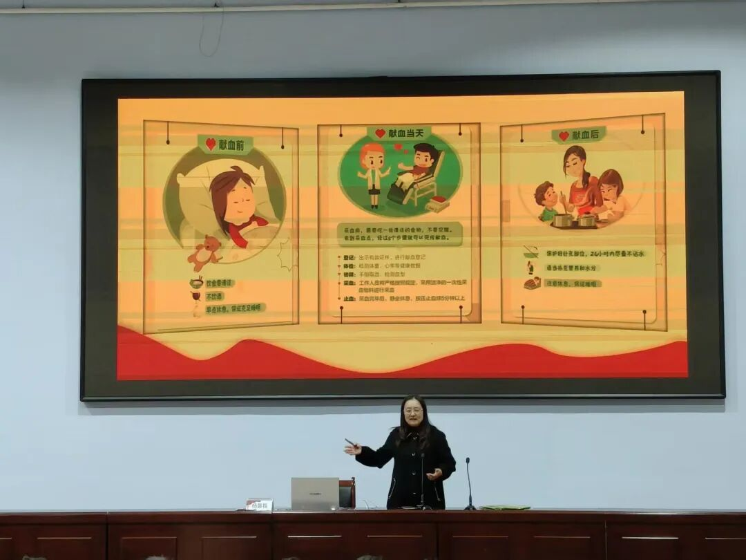 活动中,学院通过线上线下相结合的方式,向同学们普及了献血的基本知识、注意事项及重要意义,并邀请了专业医护人员潍坊市中心血站负责人杨馨艳以专业的视角进行现场讲解。同学们积极参与互动,现场气氛热烈,充分展现了当代青年学子的责任担当与爱心。