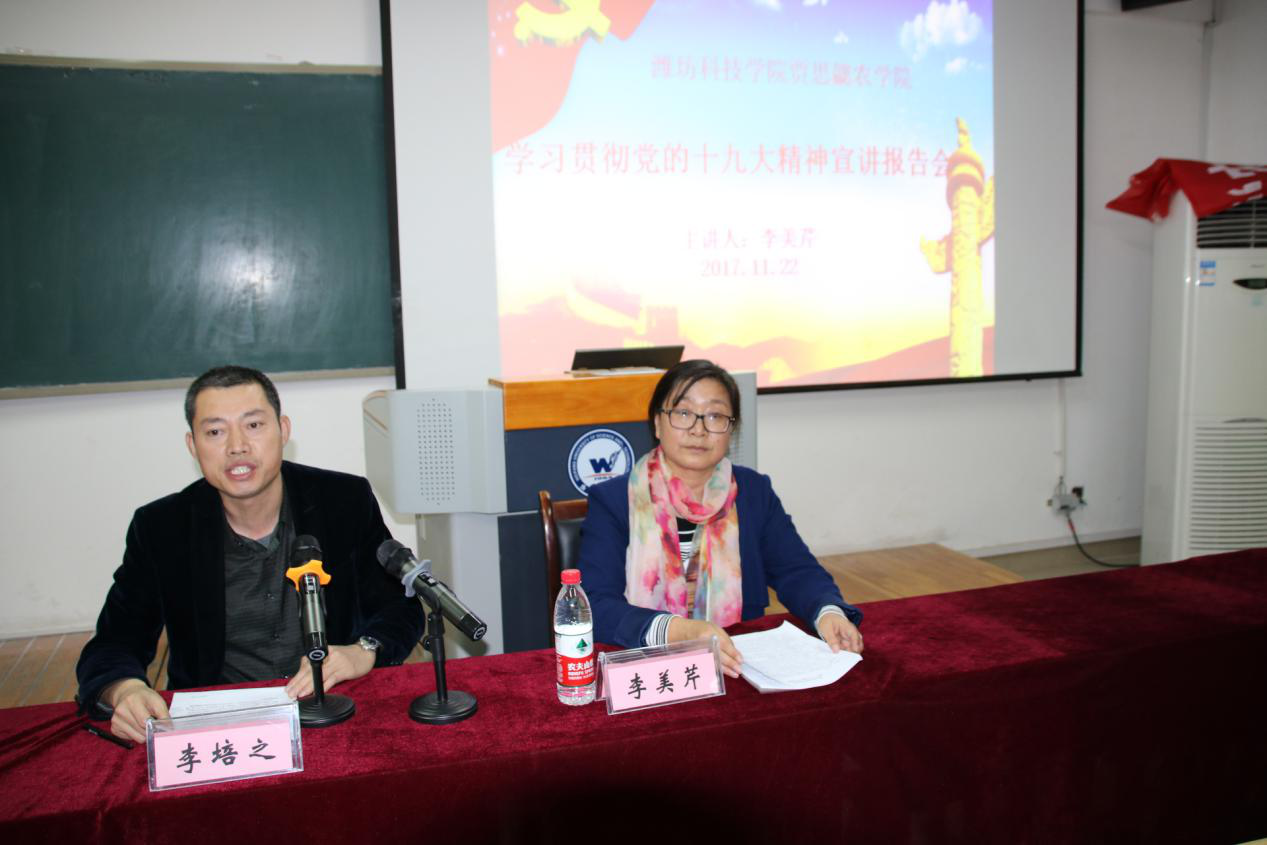 李美芹博士对农学院师生学习党的十九大精神的积极性和取得的成果进行了肯定。随后,李美芹博士从五个方面对党的十九大上习近平总书记作的报告进行了分析与宣讲。回忆中国从历史步步走来,坎坷与磨难都有,收获和进步并存,党的十九大更是让我们看到了中国未来的美好情景。