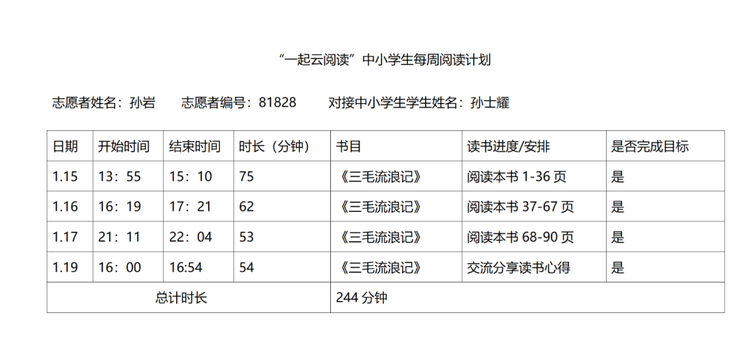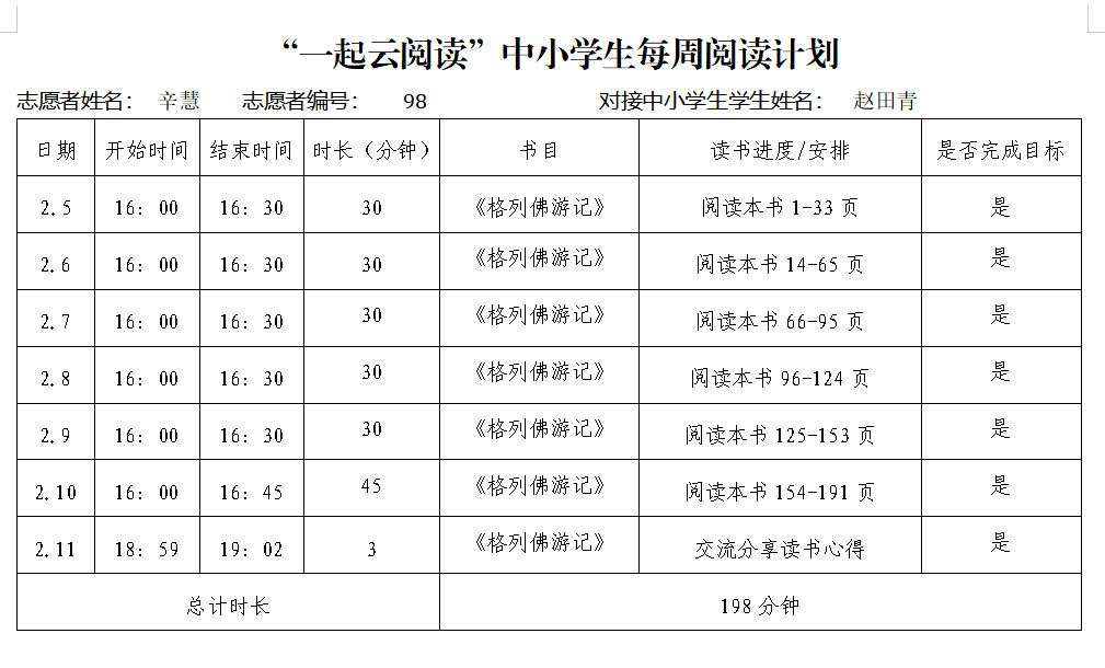 阅读中蕴藏着无限的可能,有益于明理、增信、崇德、力行,让我们的人生绽放光彩。为鼓励青少年多读书、多思考,志愿者会为所帮助的青少年精心选取一本书,共同制定详细的寒假阅读计划,一起阅读书本内容,分享阅读心得,在轻松愉悦的同时,阅读不同的书目,拓宽视野,增加知识面。
