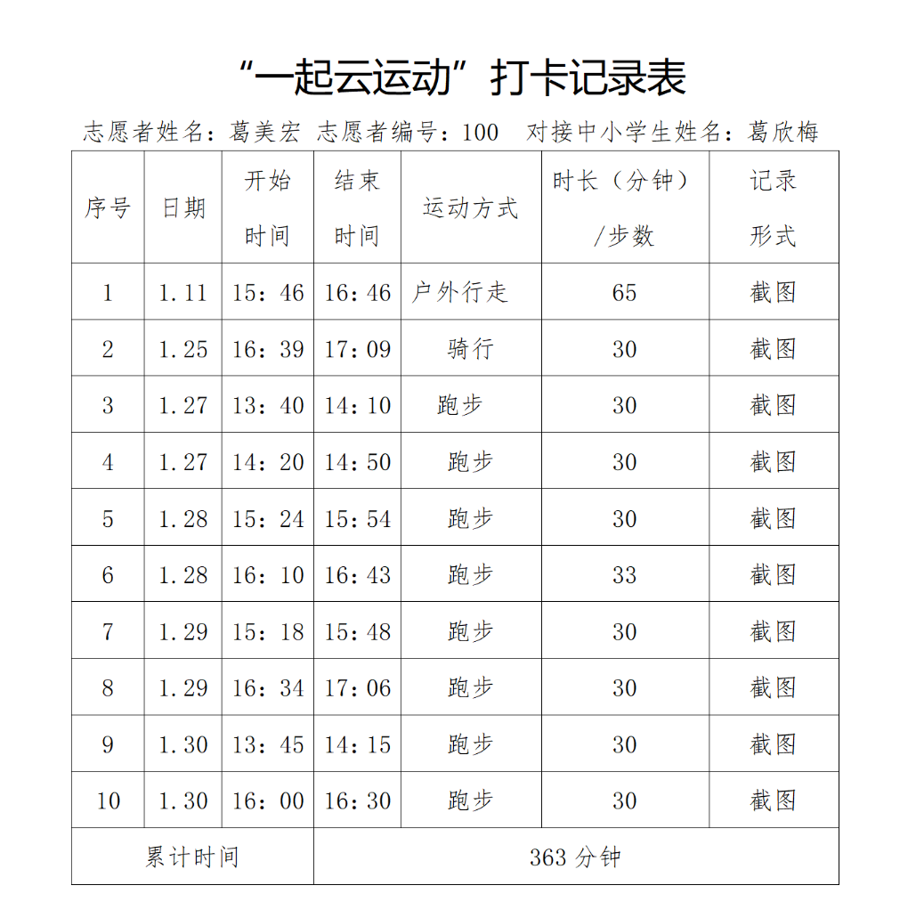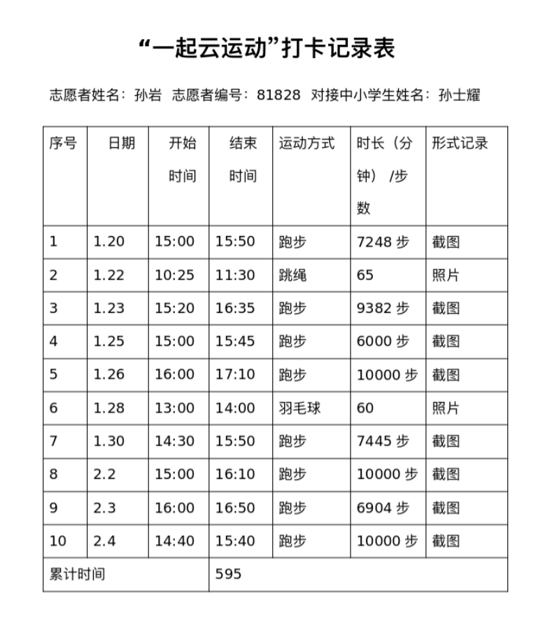 “生命不息,运动不止”,大学生志愿者引导并带领中小学生共同运动,每人每天运动不少于 30 分钟,运动形式、地点不限,鼓励利用互联网方式进行打卡记录和竞赛互动,在收获健康的同时,缓解了学业上的压力。